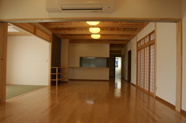 本施設は、グループホーム9名と小規模多機能施設25名(登録)〈宿泊9室〉の複合施設である。アプローチから左右に玄関が分かれ、それぞれの施設に入るプランとした。